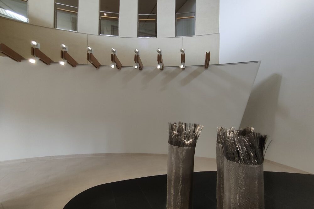 立体作品を照らすこちらの照明たち。空間デザインに違和感なく溶け込んでいます。