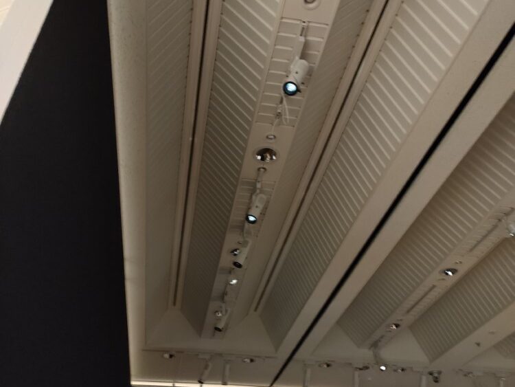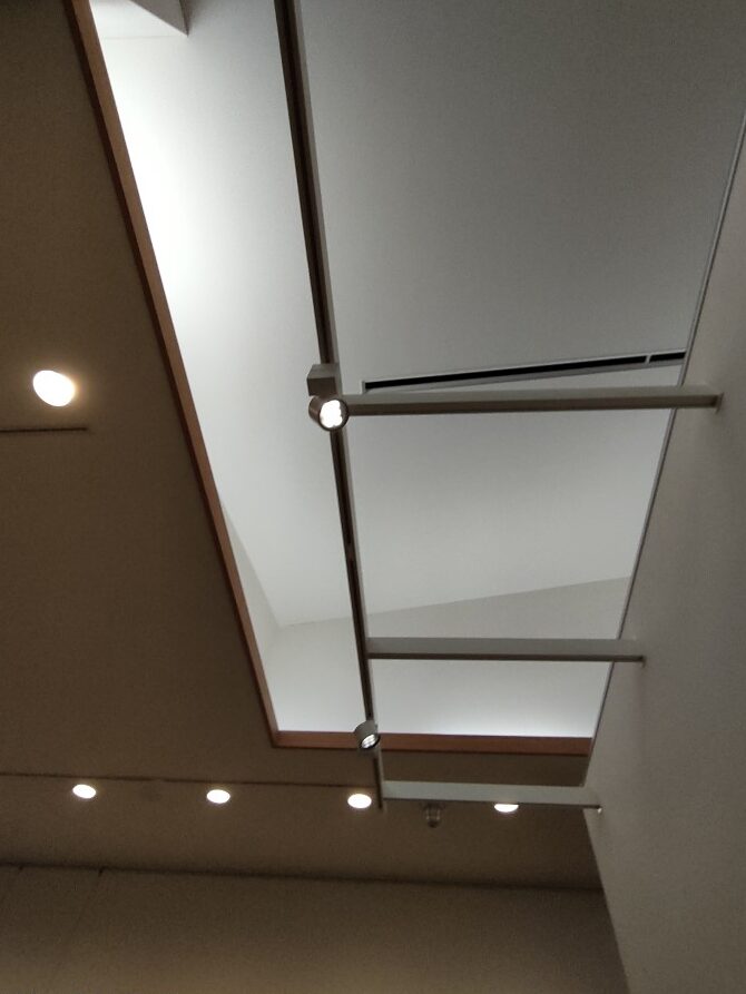 ここでは作品展示の自由度が高い、移動式のスポットライトが活躍しています。