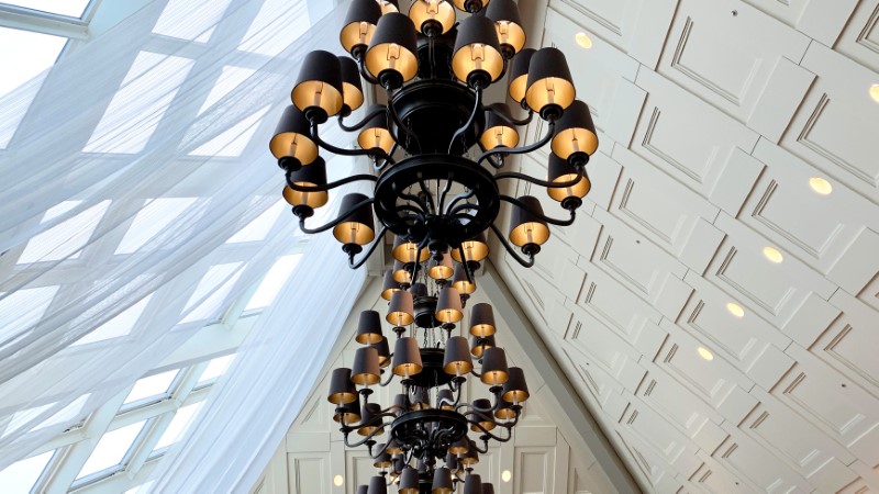 暖色系のライトだけでもテープライトや電球、スポットライト、シャンデリアなど、たくさんの種類の照明が装飾に使われていました。