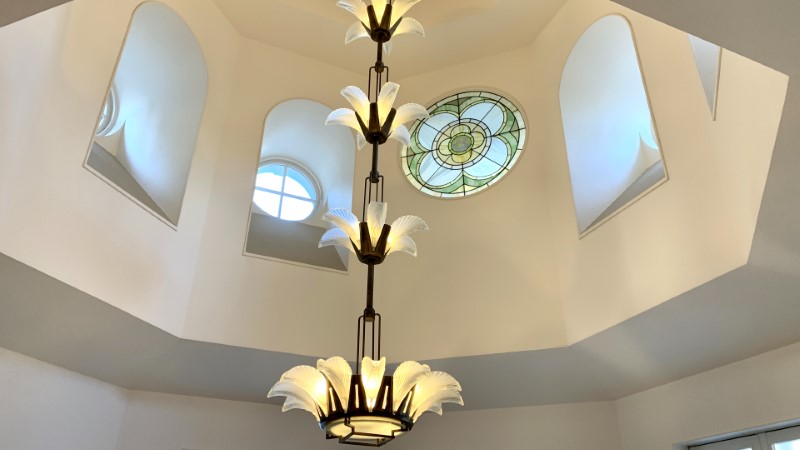 窓にかかるレースのおかげでしょうか、外の光が入りつつもシャンデリアの温かさがはっきりと伝わってきます。採光や照明がとてもよく考えられているリラックス空間でした。