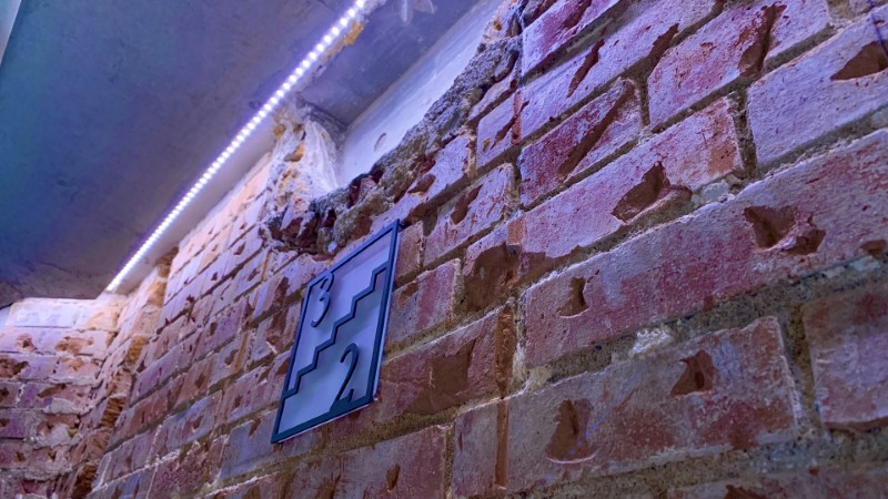 見えないすき間から優しいLEDがレンガを照らし、重厚な雰囲気を演出していました。