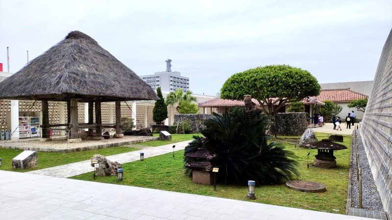中庭には、屋外展示の民家が現れました。鮮やかなオレンジ色の瓦やシダ植物を見ると「沖縄に来た!」という感じがしますね!