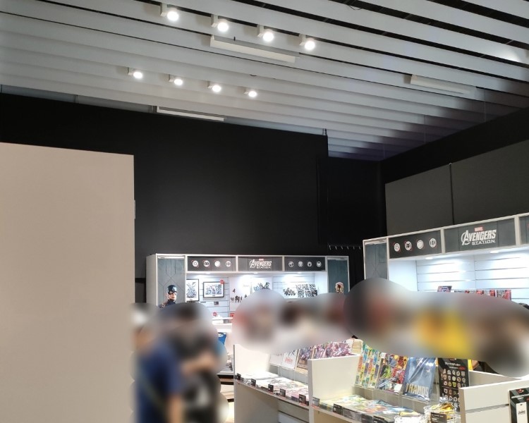 美術品の展示スペースと比べても、照明の数が多いですね。明るく照らすことで、お客さんに多くの商品を手に取ってもらえるような効果もあるのでしょうか。