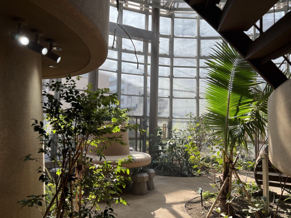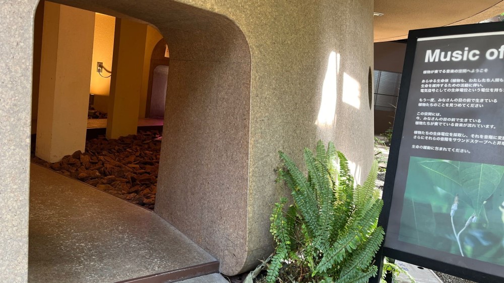 左側の柱のような建物は中に入れるようになっていて、なんとヒーリングスポットだそう。植物が奏でる音楽が聞こえてくるとか。