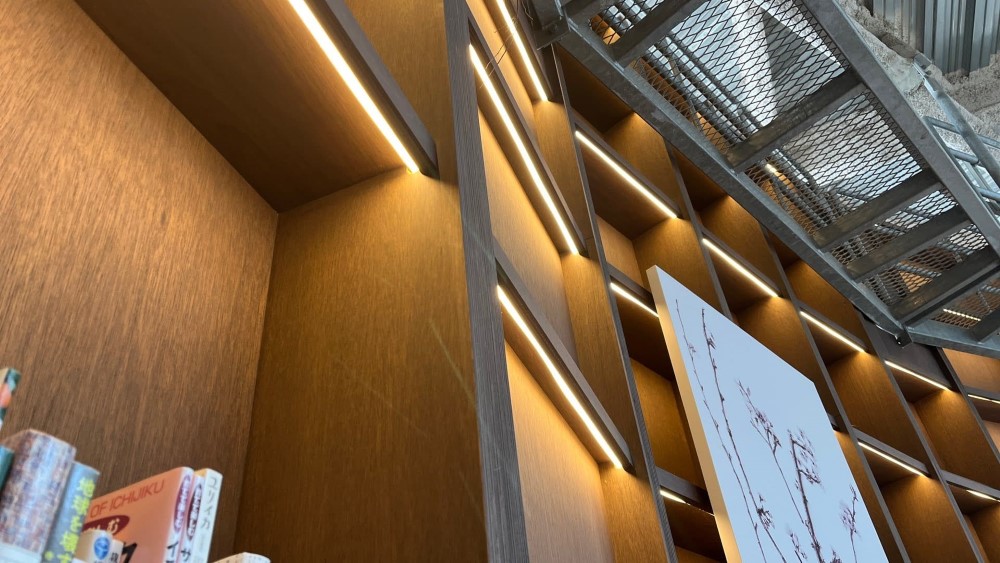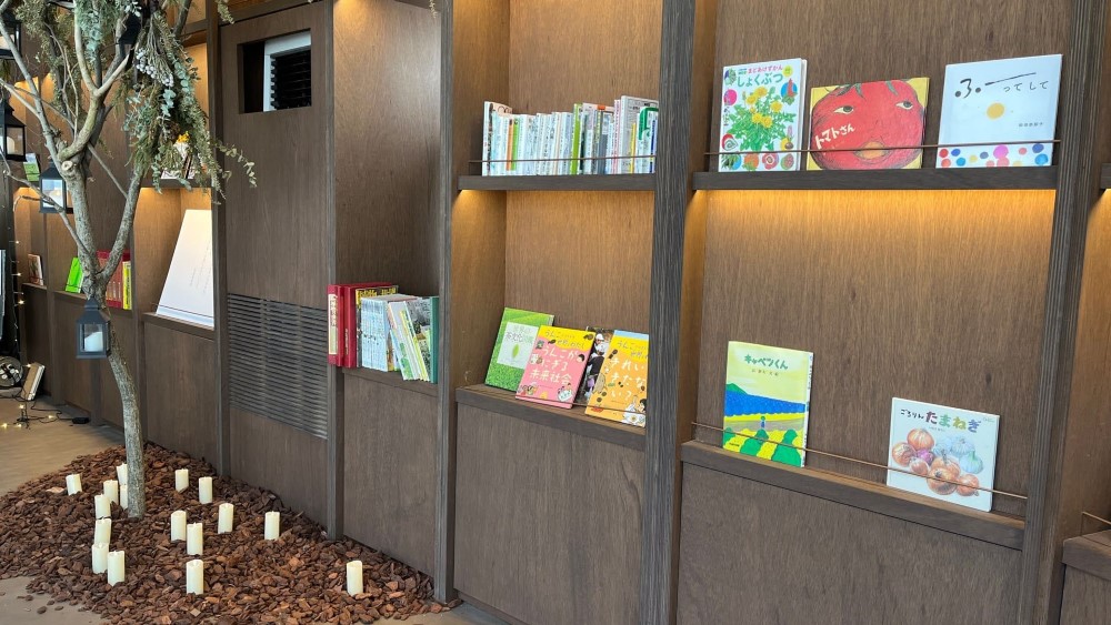 壁面に絵本が並ぶ本棚にも、照明が隠れています。一冊一冊の存在感を際立たせる、まさに影の立役者です。